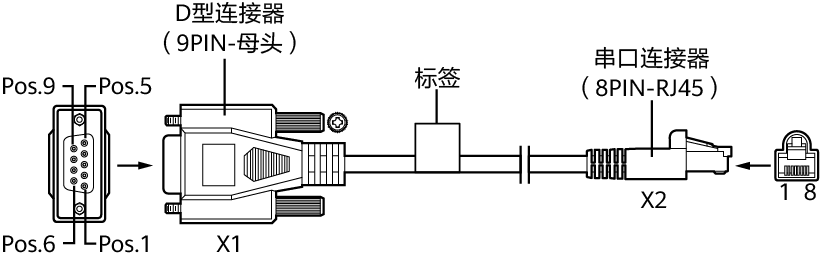 Console通信电缆的一端是RJ45连接器,连接主控板的Console口;另一端与计算机串口相连。可根据实际情况选择其中一个插入计算机串口插座。