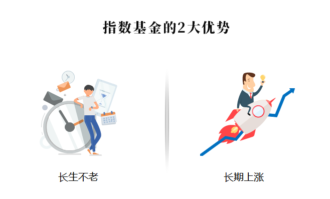 所以指数基金有 2 大优势:长生不老、综合长期上涨