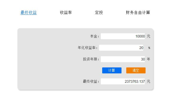 本金 10000 元,投资年限 30 年,12%和20%收益率差距多么大?