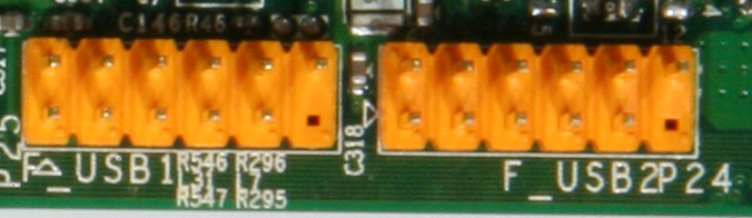 来总结一下吧,其实很简单,两个前置USB接口共有8根线,每个USB接口需要4根线。一般主板上USB接口都是两排,一排就是一个USB接口。把红色的线接在USB电源上,白色的线(带一个“-”号)接在USB数据负线上,绿色的线(带一个“+”号)接在USB数据正线上,最后接上黑色的接地线。注意的是,在一排上接的两根USB正、负数据线上的数字要相同。下面一排按上面的方法如法炮制就OK了。接完了最好再检查一遍,看看接的线的颜色排列顺序是不是跟主板自带的后挡板USB的接口一致?这样就大功告成了!从左至右颜色:红\白\绿\黑.