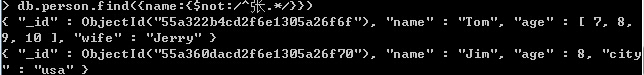 Note:$in包含,$nin不包含。跟t-sql中的in,not in一样。